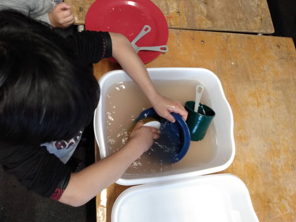 Bring a basin or a collapsible sink to clean up your dishes after meals. Then hang them on a drying line (a perfect chance to practice knot tying!) in a mesh bag for quick and easy cleanup.