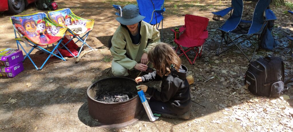 Fires are one the best parts of camp! Great for cooking, learning and keeping warm. Each campsite is equipped with at least one fire ring. There are no grills or fire irons provided so please bring those if you plan on using them in your activities. Please make sure to have water on hand to put your fire out at the end of the day and never leave it unattended.